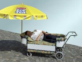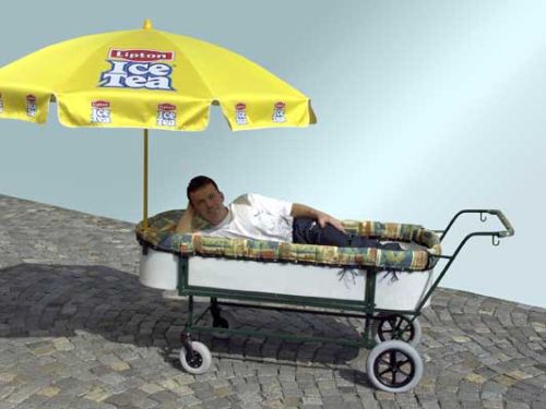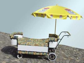 Jsou pacienti, ať už děti nebo dospělí, kteří se nemohou posadit na sebelepší vozík nebo kočárek a ti jsou pak odkázáni pouze na lůžko. Právě ro tato pacienty je určený tento typ kočárku, ve kterém pacient leží na antialergické matraci (případně s klínem pod hlavou), a má okolo sebe vyvýšené plastové očalounění okraje (aby nedošlo různým otlakům případně nežádoucím poraněním).