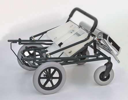 Pod sedákem v přední části je umístěn teleskop a tím je umožněno naklápění sedu z polohy vodorovné až do 20° náklonu sedáku a cca 45° opěrky zad. Změnit polohu pacienta i během vycházky je možno pouhým stlačením páčky. Kočárek TONY nelze polohovat v tak velkém rozsahu jako kočárek REVO. Opěrka nohou je nastavitelná podle délky nohou pacienta. Kočárek velmi jednoduše složíme do auta (viz. obrázek). Pokud ve složeném stavu je rozměrově nevyhovující, snadno sundáme potah včetně zádové výztuhy a tím docílíme menších venkovních rozměrů ve složeném stavu.