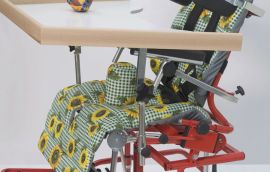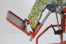 Zařízení polohovací dětské typ KUBA je celokovové konstrukce v komaxitové úpravě, tvořené podvozkem, který je opatřen 4 kusy otočných koleček z toho dvěma s brzdou. očalouněný laminátový naklápěcí sedák doplňují: výškově a vodorovně stavitelná opěrka hlavy, výškově a šířkově stavitelné opěrky rukou, výškově a úhlově stavitelná opěrka nohou s možností dvojího uložení. Polohu i výšku sedačky lze upravit jednoduchým uvolněním dvou páček a stlačením teleskopu s pružinou. U sedáku lze samostatně naklápět opěrku zad (4 polohy), dále možnost plynule přestavitelné hloubky sedu, včetně doladění pomocí stavitelného mezinožního klínu, což umožňuje pohodlnou polohu jak pro odpočinek, tak i pro pracovní činnost. Snadno vyměnitelné čalounění je opatřeno upínacími H - popruhy a stavitelným mezinožním klínem. Na vyžádání lze s doplatkem přiobjednat fixaci chodidel, fixaci v oblasti holení a fixaci beder i boků. Uplatnění nalezne v domácnostech, školách, stacionářích apod., zejména při krmení dětí a přesunech po místnosti. Vhodná je v kombinaci s pracovní plochou UNI, kód 0078123/12.